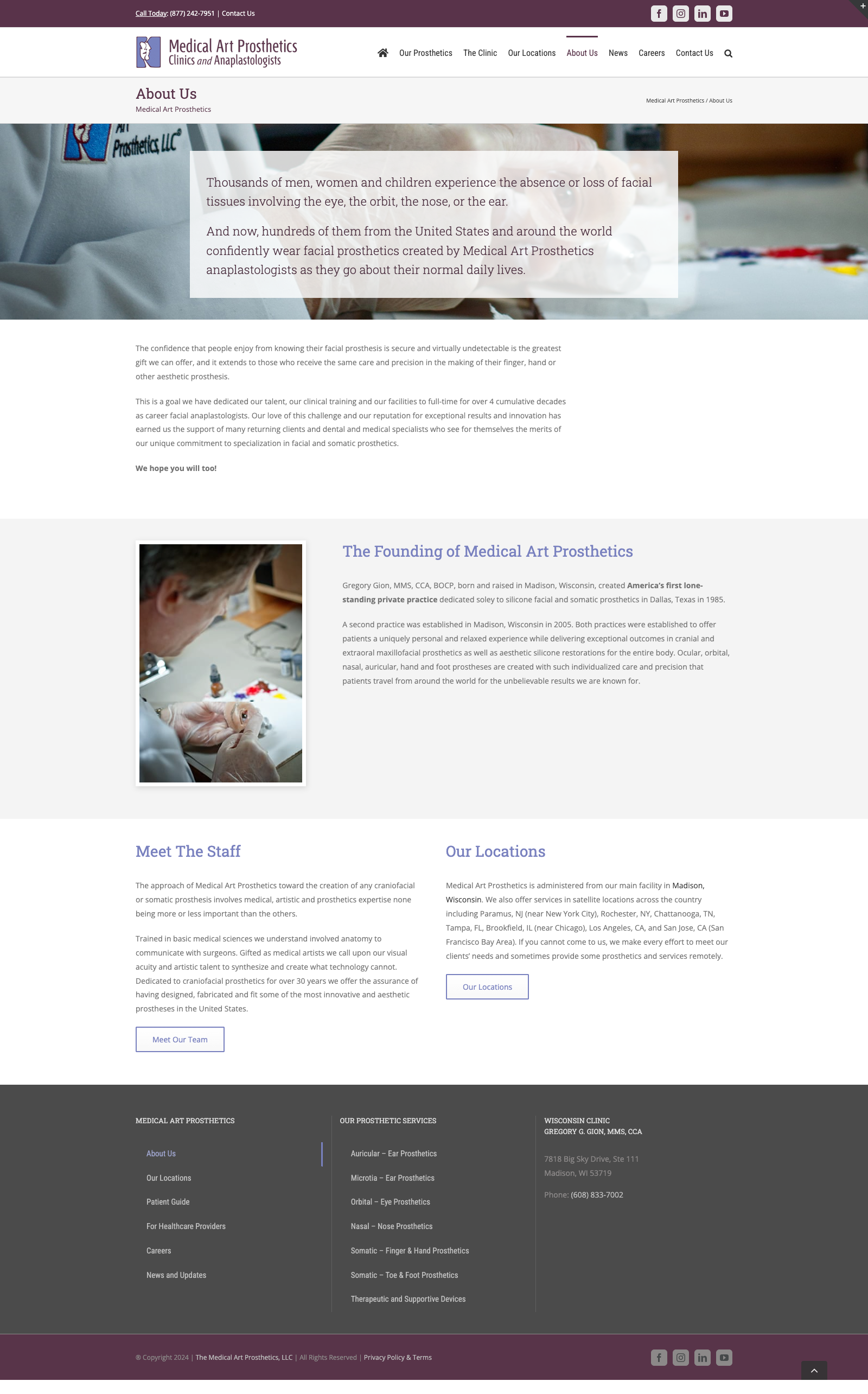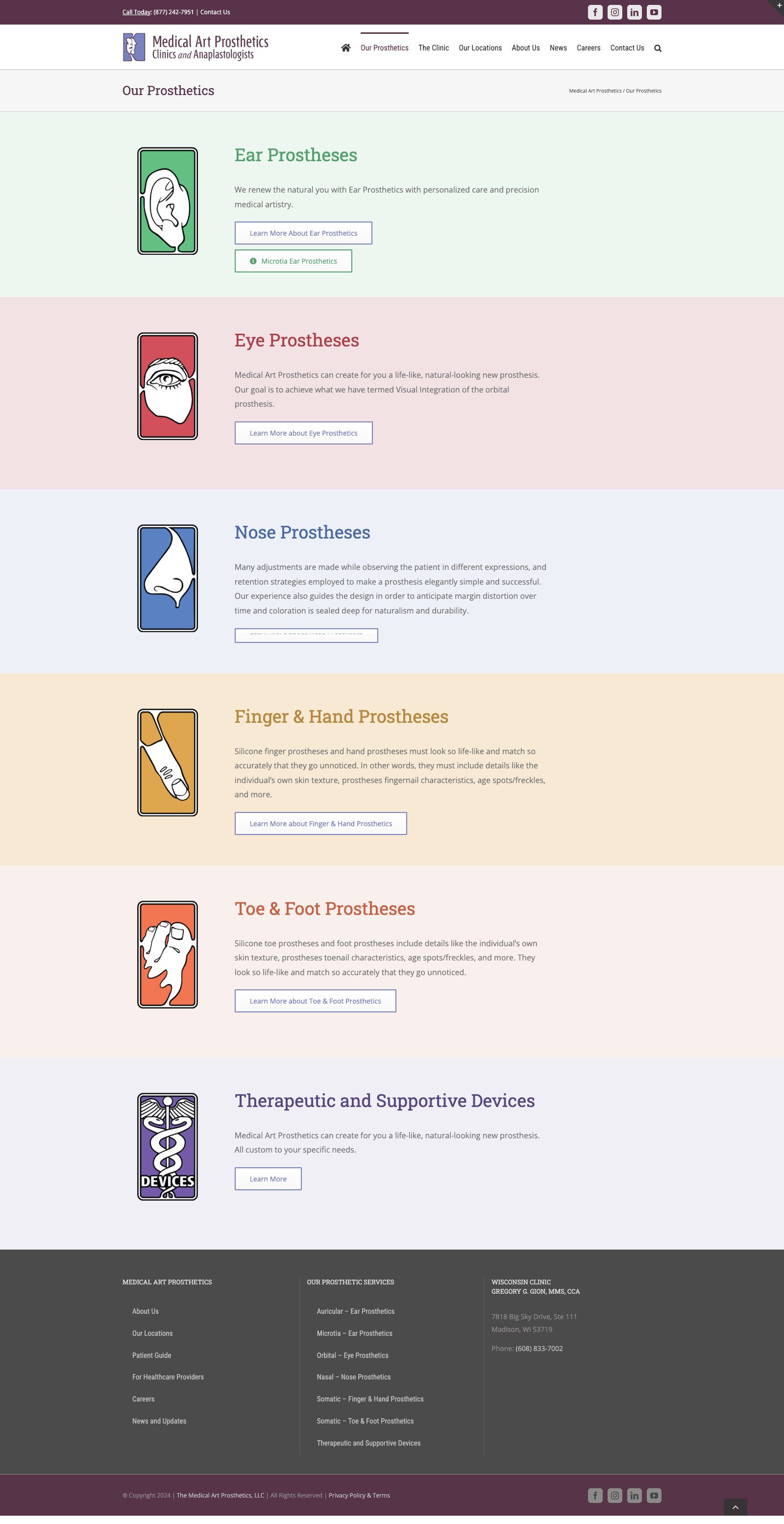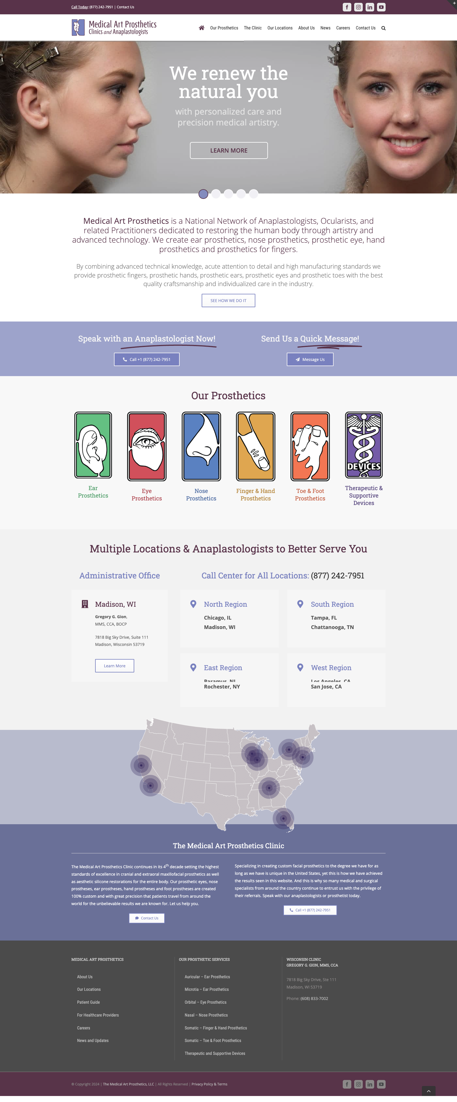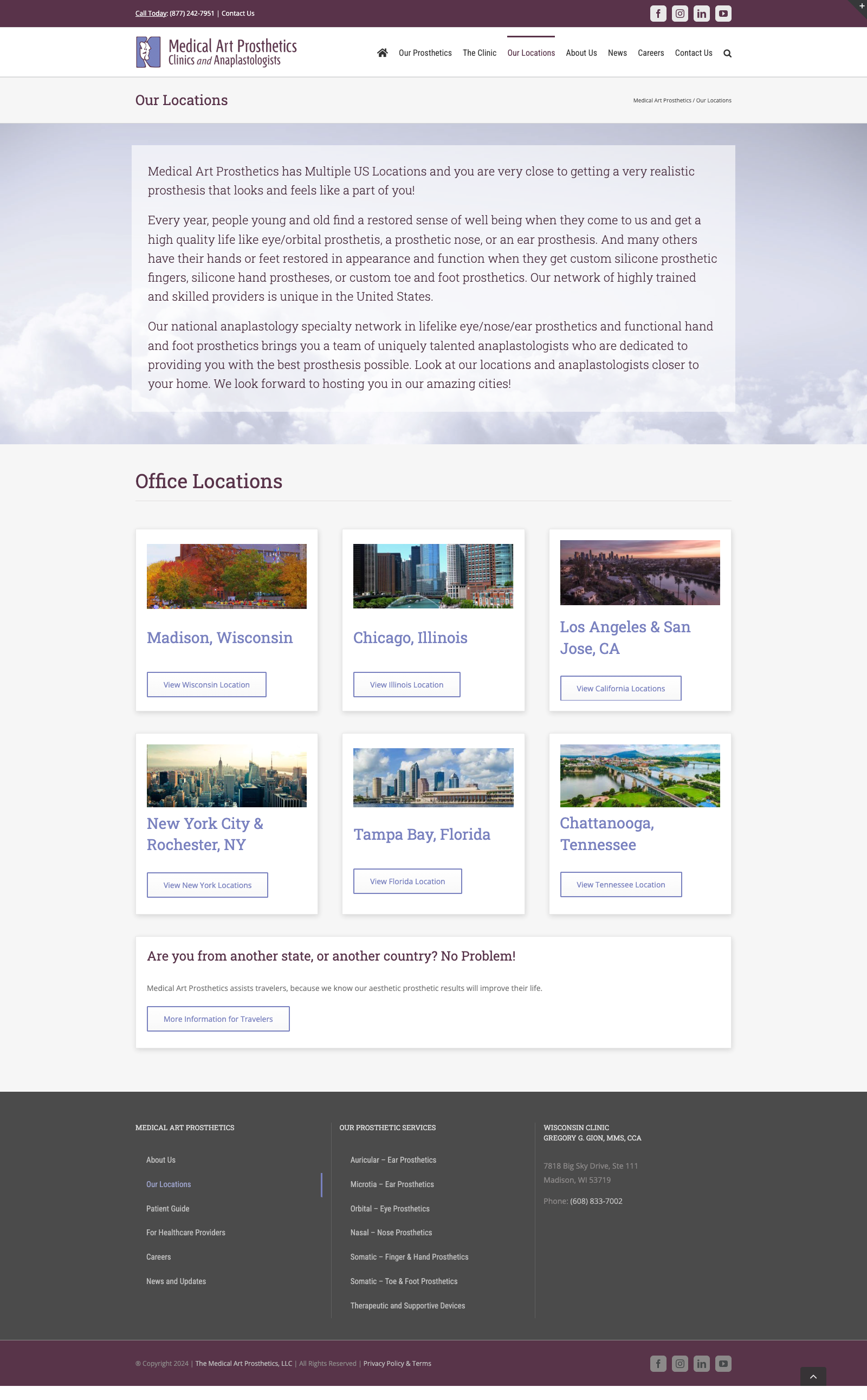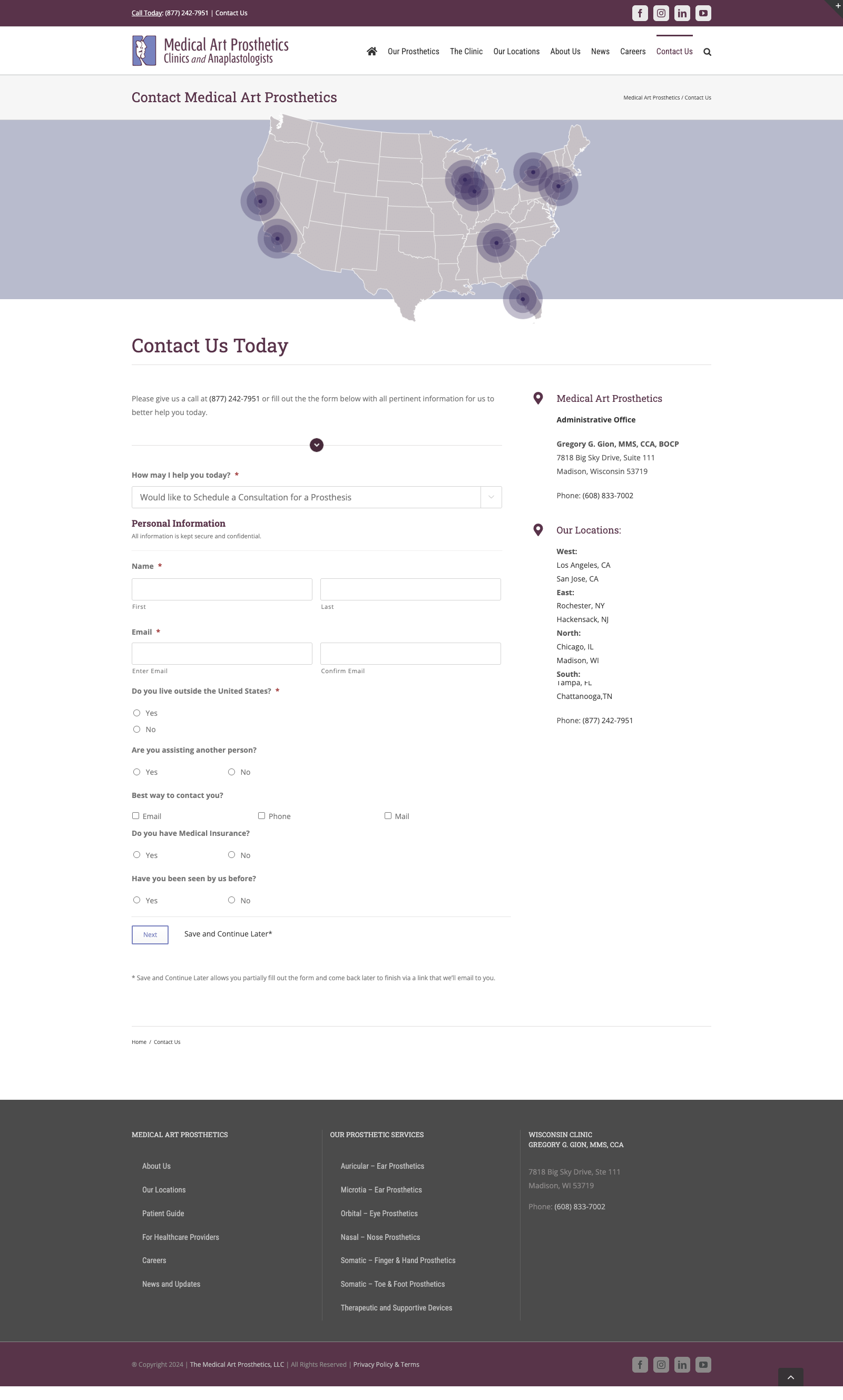 Business Website for Prosthetics Clinic with multiple locations – Site is fully responsive for Mobile.