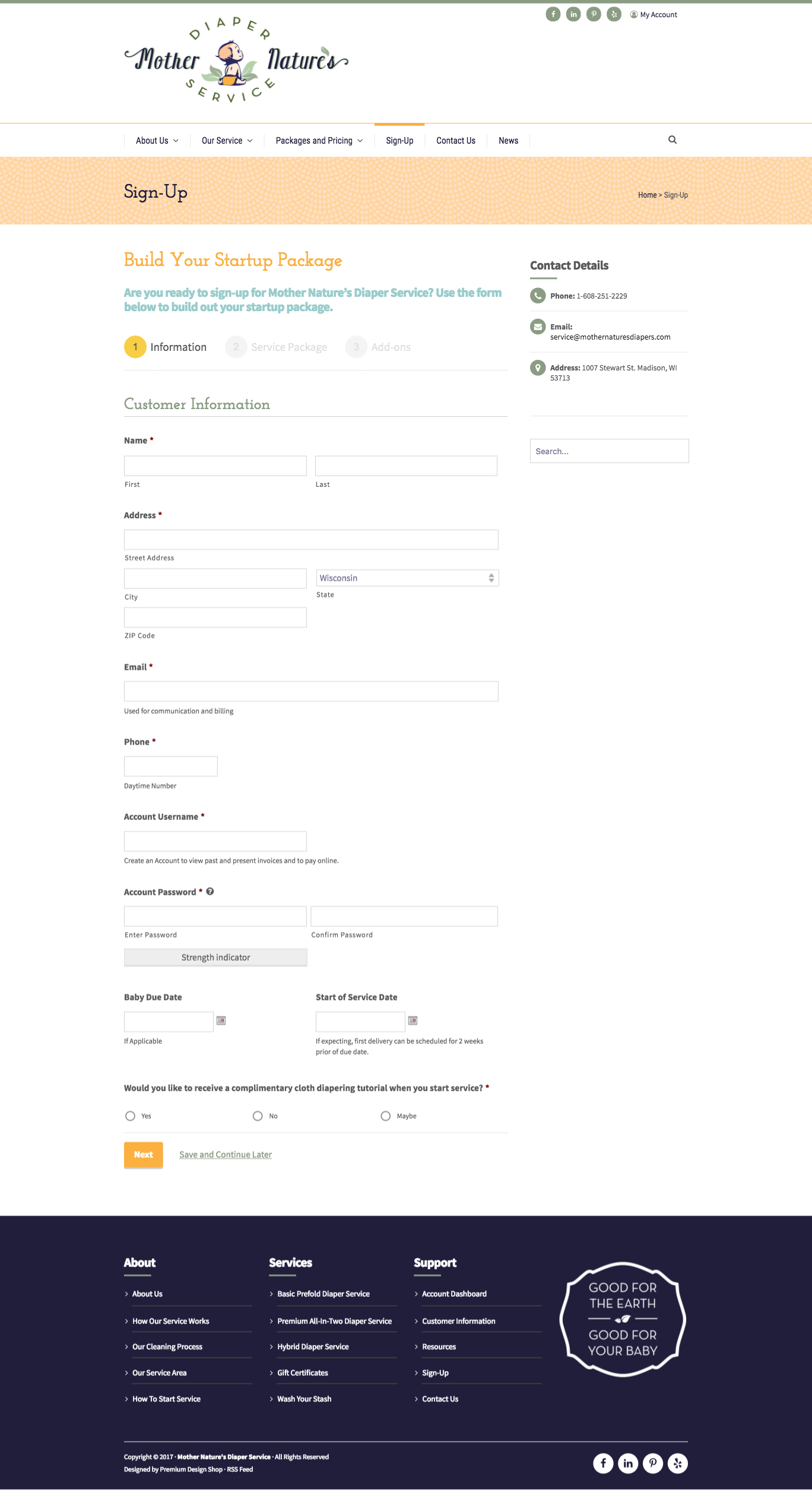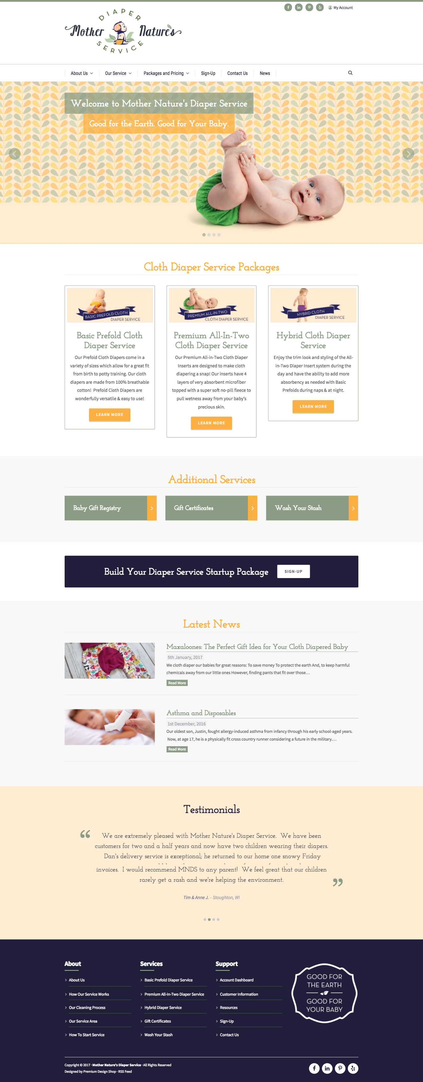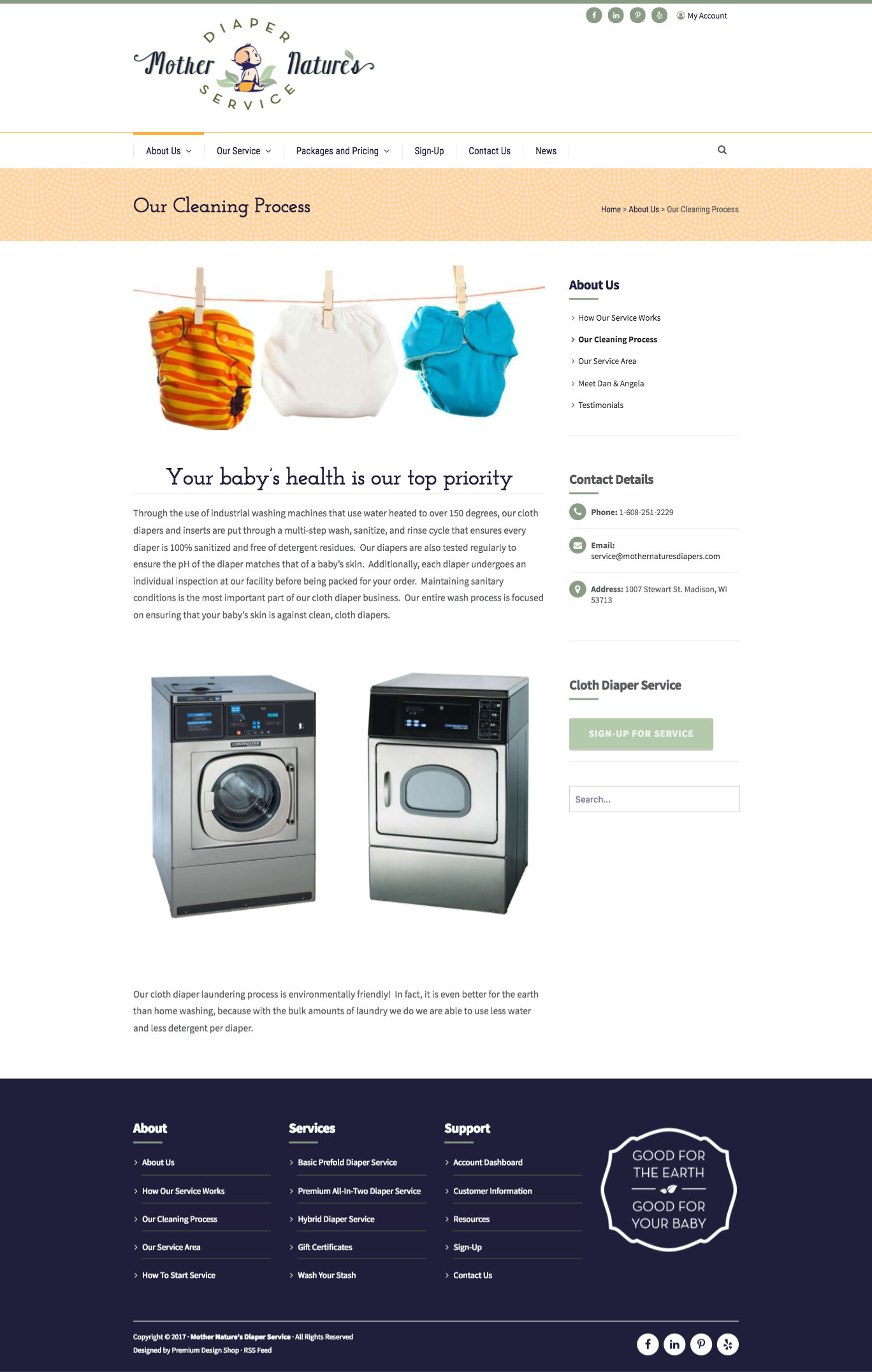 Website for a Cloth Diaper Cleaning Service & Invoicing Service – Site is fully responsive for Mobile.